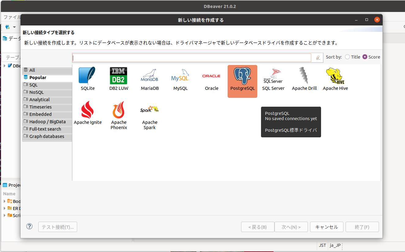 DBeaverで接続します。